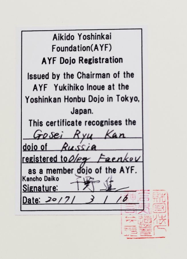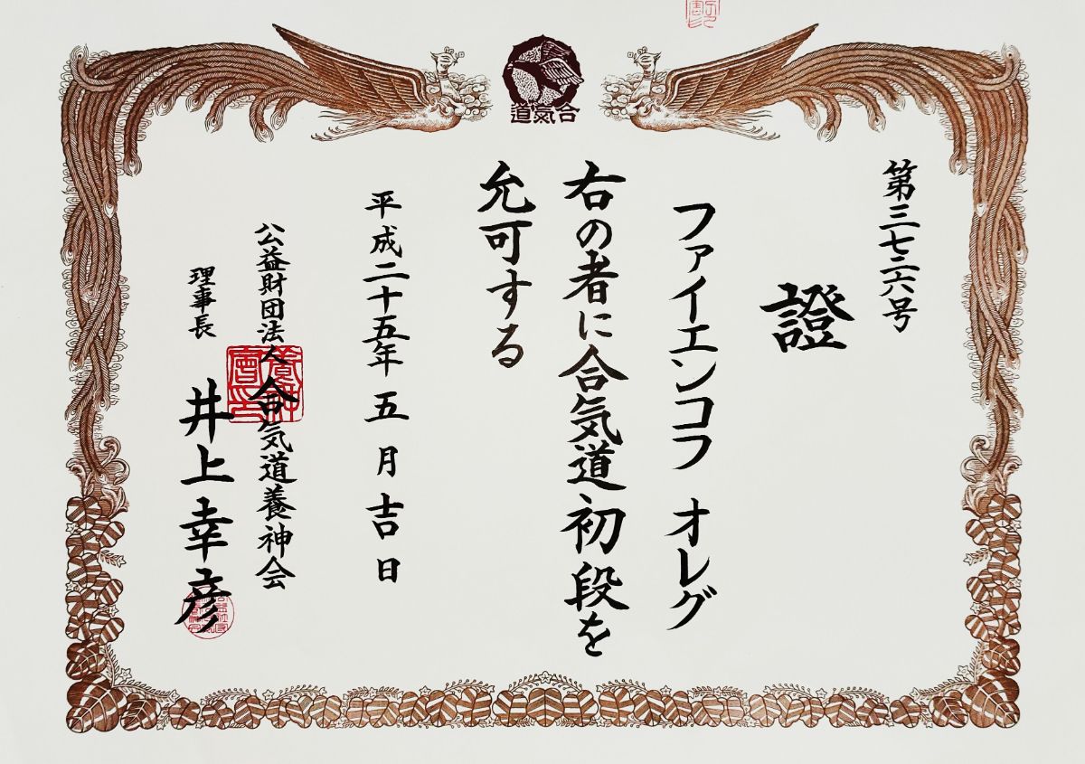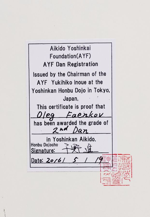 1 дан Айкидо Ёсинкан (чёрный пояс)