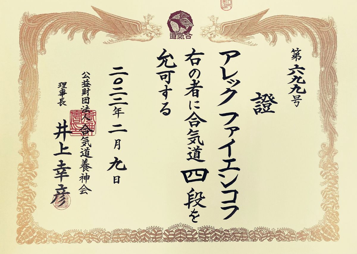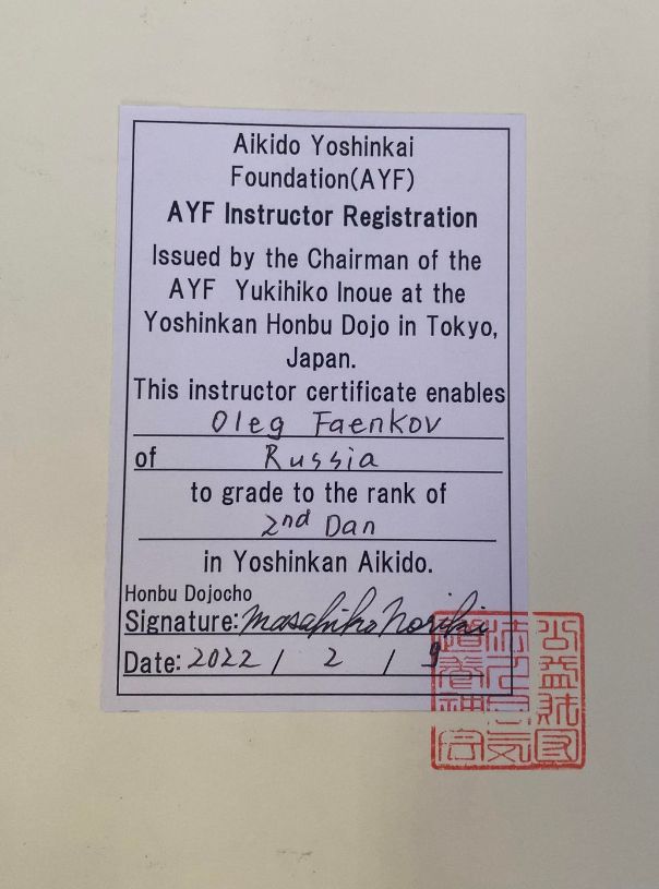 4 дан Айкидо Ёсинкан (чёрный пояс)